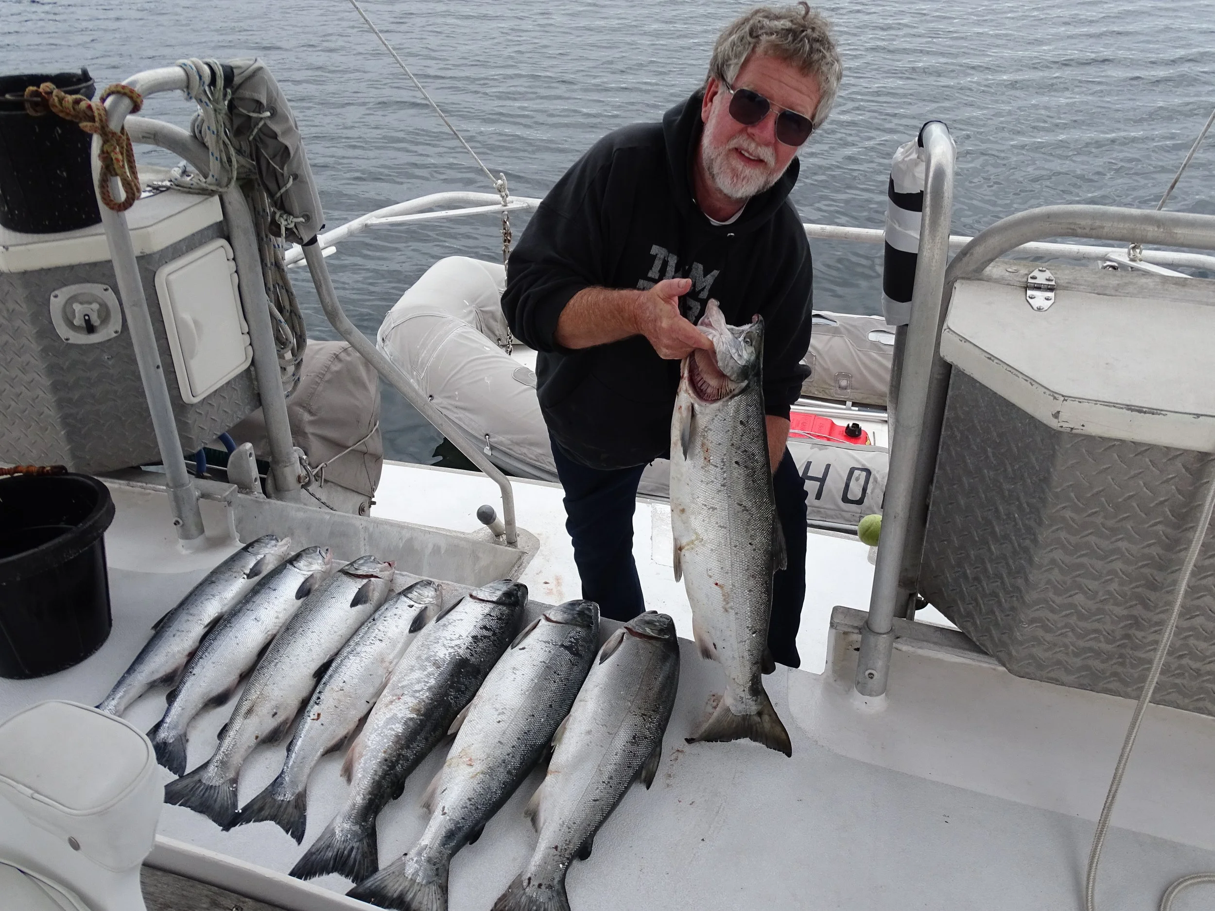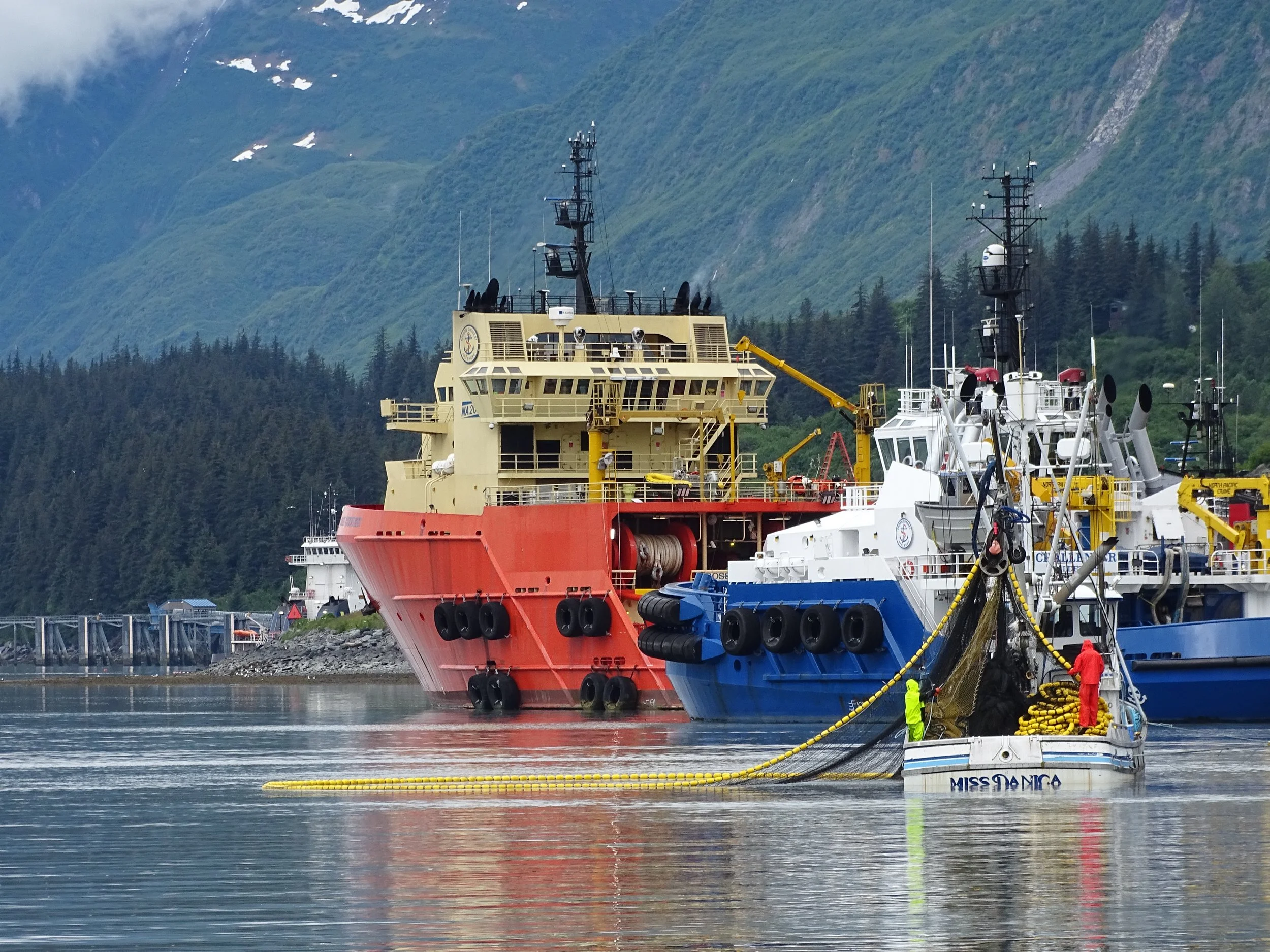 The name of the game in Southern Alaska is Salmon. Salmon returns to the place where they were hatched. Seiners, pictured above, were among the most common fishing vessels in the salmon fleet. The small vessel sets the nets and closes the seine net up back to the trawler. Sounds easy, but a lot of knowledge and understanding of the fish is needed. Salmon openings lasted only 24-48 hours in very specific areas. We stayed very clear of the open fishing areas as there is nothing wilder than a large number of fishing boats jockeying for position to haul in salmon. A lot of money can be earned in a season and the weather, most of the time, does not cooperate like on these photos.